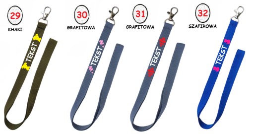 * smycz w wielu kolorach do wyboru, m.in. czarnym, białym, błękitnym, bordowym, zielonym, czerwonym, żółtym itp.