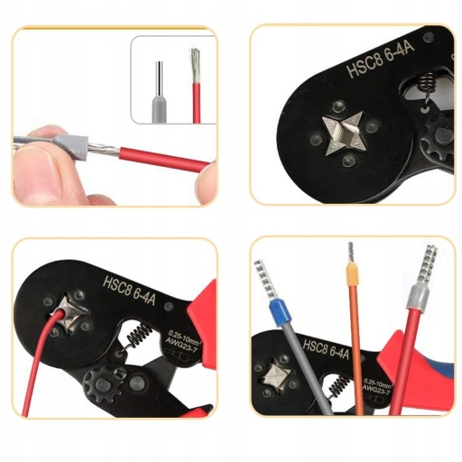 ➡️ Zestaw zawiera: ✔️ Praskę automatyczną, ✔️ 1200 sztuk różnego rodzaju tulejek, ✔️ do tulejek. ➡️ Specyfikacja praski: ✔️ Model: HSC8 6-4A ✔️ Zakres pracy: 0,25 - 10mm2, AWG 23-7 ✔️ Posiada blokadę zacisku ✔️ Praska otwiera się dopiero po zaciśnięciu tulejki. ✔️ Wymiary: długość ok. 175mm