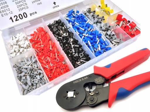 Zaciskarka Do Kabli Praska Tulejek Końcówek Zestaw Tulejek 1200 szt. Duży zestaw ➡️ Wysokiej klasy praska przeznaczona do zaciskania tulejek izolowanych oraz nieizolowanych w rozmiarze od 0,25 do 10mm2. Wysoka jakość wykonania, czterokątny system zaciskania oraz trzystopniowa blokada szczęk zapewnia wygodę użytkowania. ➡️ Tulejki umieszczone zostały w przezroczystym opakowaniu - dzięki któremu łatwo utrzymać porządek, jak i kontrolować stan tulejek.