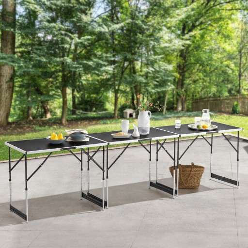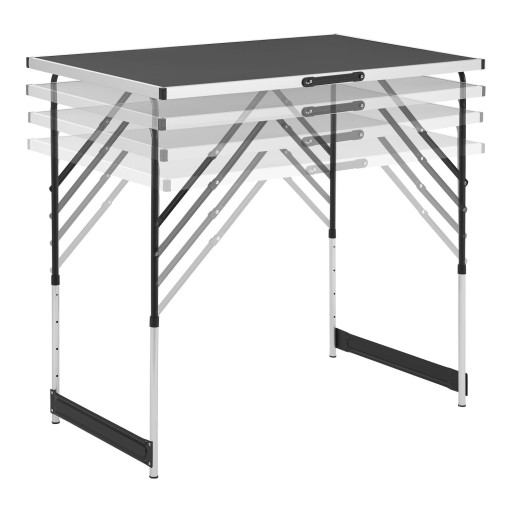 Dzięki 3-częściowemu aluminiowemu stołowi wielofunkcyjnemu, o regulowanej wysokości i składanym, szybko stworzysz dużo miejsca. Czy to na pchlim targu, kempingu, czy pysznym bufecie na przyjęcie urodzinowe.