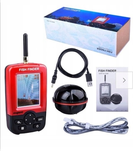 Echosonda działa bezprzewodowo dzięki bojce pracującej w częstotliwości 125KHz wyposażona w ekran LCD