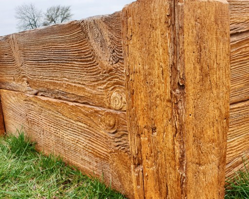 - Materiał: Drewno betonowe - nowoczesne połączenie betonu i drewna, które zachowuje ciepły wygląd drewna przy zachowaniu trwałości betonu.