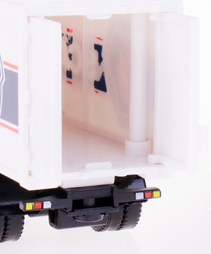 Model wykonany jest z metalu (kabina) oraz z elementów plastikowych (naczepa, podwozie).