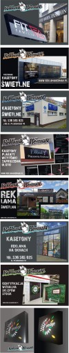 - grafika kasetonu: plexi 3mm biała + kolorowa folia translucentna