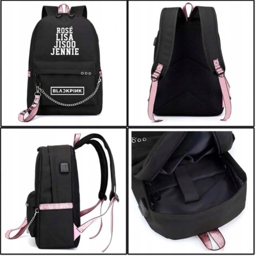 - Do plecak dołączony jest kabel USB, kabel do słuchawek Jack, kłódka na szyfr, piórnik świecący, listonoszka BLACKPINK