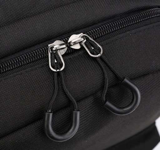 - Plecak zapinany na zamek błyskawiczny, który można zabezpieczyć kłódką szyfrowaną dołączoną do plecaka w zestawie,