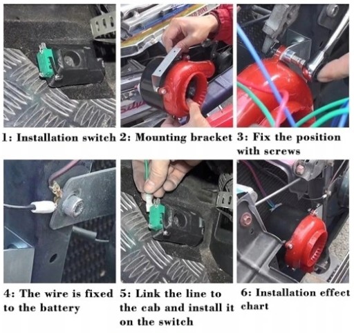 4 przewody połączenia systemu. (Czarny jest ujemny, czerwony jest dodatni, niebieski dla przełącznika)
