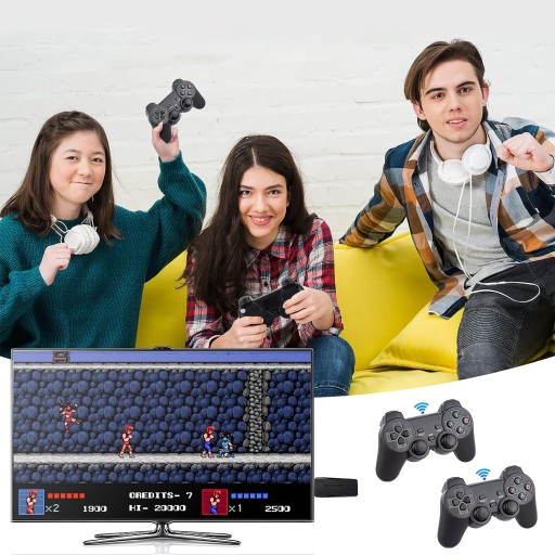 🎮Dwa kontrolery bezprzewodowe obsługujące sygnał 2,4 GHz eliminują potrzebę stosowania kabla i umożliwiają sterowanie konsolą za pomocą dwóch kontrolerów.