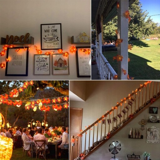 w wewnętrznych balustradach schodowych, kominku, ścianach sypialni, sufitach, podłogach, ościeżnicy i ogrodzie zewnętrznym, patio, namiocie, trawniku, wszystkie miejsca, które chcesz udekorować, mogą prezentować twoją kreatywność i estetykę. wzdłuż liści klonu lampki smyczkowe przynoszą bogate jesienne wibracje!