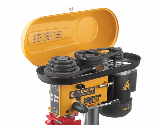 ✅ Jedną z pięciu prędkości obrotowych wybieramy poprzez przełożenie paska na kompozytowych kołach pasowych, który znajdziemy po uniesieniu górnej pokrywy.