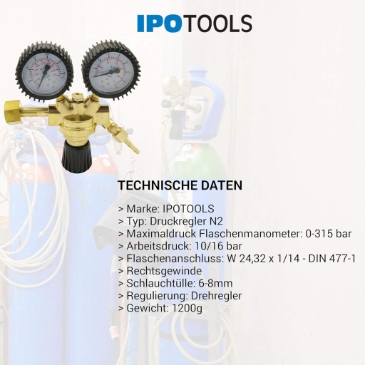 ⭐ Reduktor ciśnienia Ipotools N2 to kompaktowe, precyzyjne urządzenie do regulacji ciśnienia, które nie wymaga konserwacji. Zawór został zaprojektowany do podłączenia do butli z azotem.