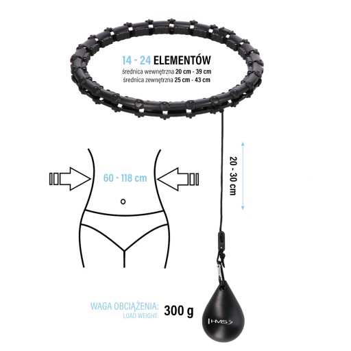 ⚡ZESTAW HULA HOP HHW02 BLACK Z WYPUSTKAMI I OBCIĄŻNIKIEM HMS + PAS BR163 BLACK PLUS SIZE⚡