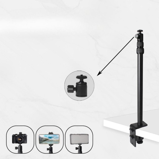 [Wszechstronny stojak biurkowy 2 w 1]: Ten rozkładany stojak biurkowy jest wyposażony w głowicę kulową 1/4 cala, dzięki czemu doskonale nadaje się do mocowania aparatów DSLR, smartfonów, lamp panelowych i nie tylko. Idealnie nadaje się do nakładania makijażu, transmisji na żywo i fotografii