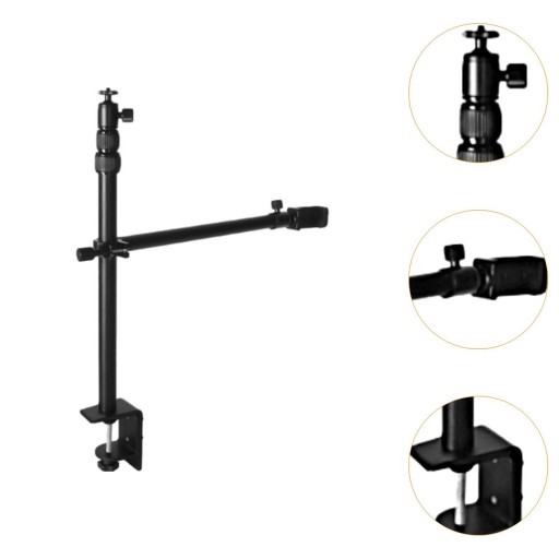 [W zestawie ramię przedłużające]: Aluminiowe ramię przedłużające może utrzymać ciężar do 1 kg, co umożliwia podłączenie do niego oświetlenia wypełniającego, mikrofonów, smartfonów itp.