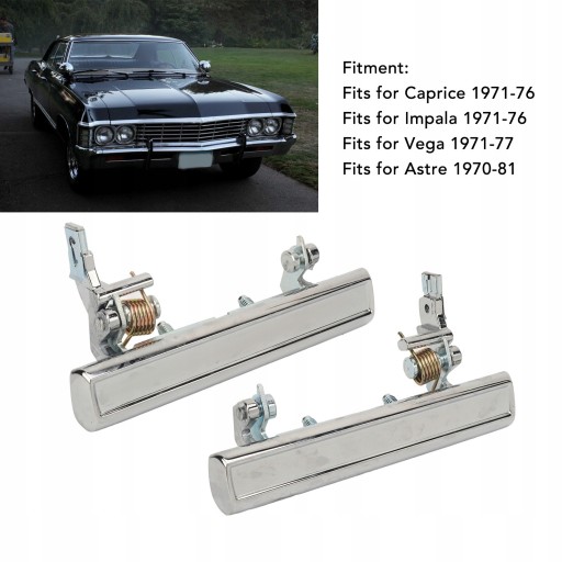 2. Montaż: Klamka zewnętrzna jest zamiennikiem dla Caprice 1971-76, Impala 1971-76, Vega 1971-77, Astre 1978-81, Astre 1970-77.