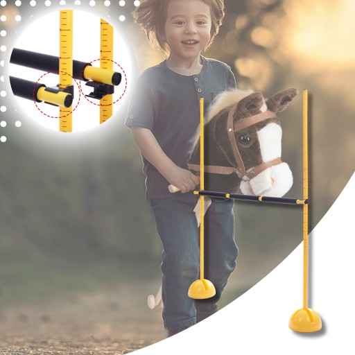 - Wszechstronność zastosowania – Przeszkoda świetnie nadaje się nie tylko do zabawy z konikiem na kiju, ale również do innych aktywności, takich jak przechodzenie pod tyczką czy trening z psem.