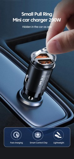 Ładowarka samochodowa Mini 200W/100W USB typu C, szybko ładująca się