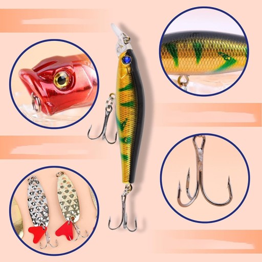 - Wysokiej jakości wykonanie: Zdeklasuj innych dzięki naszym fachowo zaprojektowanym przynętom. Dzięki ostrym jak brzytwa haczykom, urzekającym oczom 3D i autentycznym wzorom ryb, nasze przynęty wyróżniają się w wodzie, kusząc nawet najbardziej nieuchwytne ryby.