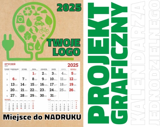 Wśród naszych innych ofert możesz dokonać zakupu usługi wykonania projektu kalendarza trójdzielnego. Taki projekt będzie można wykorzystać przy druku kalendarzy zakupionych na niniejszej ofercie. Naszych klientów obsługujemy kompleksowo - od projektu po druk.