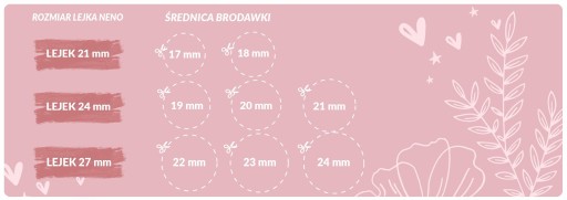 Każda pierś jest inna, dlatego wybierz odpowiedni dla siebie rozmiar lejka Neno. Właściwie dobrany lejek jest bardzo ważny dla dobrego przepływu mleka oraz komfortu Mamy podczas odciągania. Neno w swojej ofercie ma 3 rozmiary lejków: – lejek SLIM 21 – średnica brodawki 17/18 mm – lejek 24 – średnica brodawki 19/20/21 mm – lejek LARGE 27 – średnica brodawki 22/23/24 mm Lejki Neno zapobiegają urazom i otarciom brodawek, pasują do wszystkich modeli laktatorów Neno, są BPA free – bezpieczne da zdrowia Mamy i dziecka.