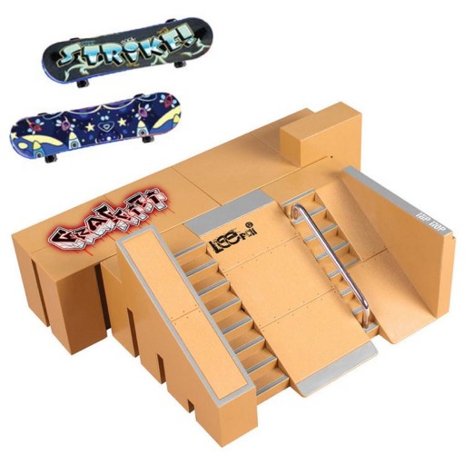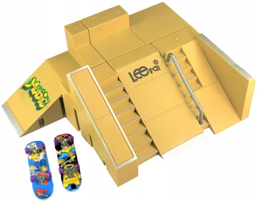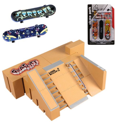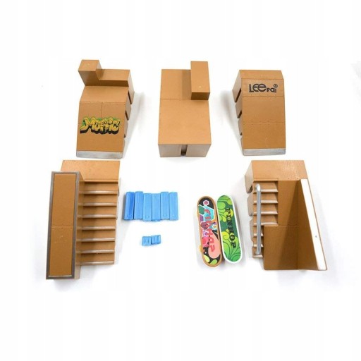 - Zestaw zawiera: Dwie mini deskorolki, zestaw plastikowych łączników, skatepark składający się z 5 modułów oraz rampy