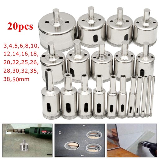 Może być używany ze standardową wiertarką elektryczną (brak w zestawie). Zawsze używaj smaru ( wody), w przeciwnym razie wiertło diamentowe spali się. Ostrzeżenia: nie do użytku na betonie ani na głębokości około 1/2"; Podczas wiercenia wymagana jest woda do smarowania.