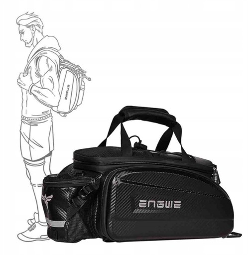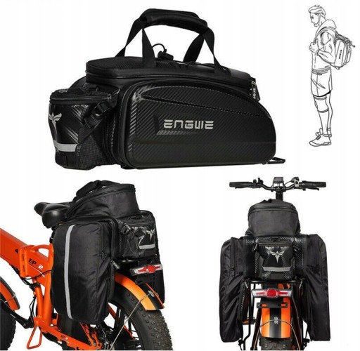 Torba rowerowa na bagażnik wykonana z wodoodpornego materiału. Można rozłożyć ją przy pomocy suwaka do rozmiaru sakwy, kiedy potrzebujesz większej pojemności. Jest ona łatwa w instalacji, stabilna i wygodna, nie wygina się podczas stosowania. Skutecznie chroni ubrania, buty, telefon, kamerę i inne przedmioty.