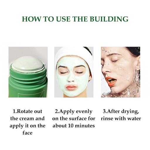 1、1. Natural ingredients: Green tea solid clay stick contains green tea extract, which can effectively clean skin pores, deeply clean skin dirt, replenish skin moisture, regulate skin water and oil balance, nourish skin, and improve skin texture. 2、2. Moisturizing: Effectively reduce blackheads, control oil, improve facial dullness and maintain beautiful skin. Suitable for all skin types. 3、3. Convenient to carry: The product adopts a rotating head design, which is more convenient to use, not easy to get hands dirty, small in size, and easy to carry. It is suitable for family, travel, business trip and other occasions. 4、4. Easy to use: Fine and smooth texture, easy to use. 5、5. Instructions: Clean the face before use, apply the product on the face or body, let it stand for about 10 minutes, and then wash it off.