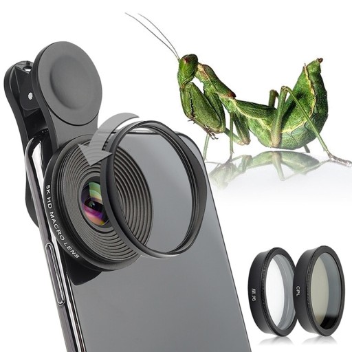 [Obiektyw makro]: Ten obiektyw makro 5K do telefonów komórkowych zapewnia zniekształcony obraz o dużej głębi ostrości. Może skutecznie skupiać uwagę na obiektach z odległości od 0,79 cala do 3,15 cala, przezwyciężając niedociągnięcia związane z niewystarczającym światłem i małym zakresem ostrości spowodowanym zbliżeniem tradycyjnymi obiektywami makro w telefonie.