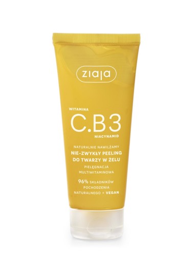 Peeling do twarzy marki ZIAJA. Pochodzi z serii Witamina C.B3 Niacynamid, która polecana jest w szczególności do skóry suchej, dojrzałej, a także tłustej oraz pozbawionej blasku i zmęczonej. Jest wegański i w 96% zawiera składniki pochodzenia naturalnego.Delikatnie, a przy tym dokładnie oczyszcza skórę z wszelkich zanieczyszczeń oraz nadmiaru sebum. Złuszcza martwy naskórek, wyrównuje koloryt skóry, a także wygładza naskórek. Zawiera w sobie kompleks witamin C, B3, B5 i B6, hydrolizowane proteiny ryżowe, olej z kamelii japońskiej, masła shea oraz kwasu hialuronowego, które nawilżają i rewitalizują. Kosmetyk dostępny jest w tubce o pojemności 100 ml.