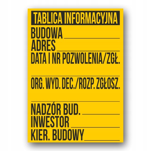 - Tablica informacyjna budowlana 50cm szer. x 70cm wys.