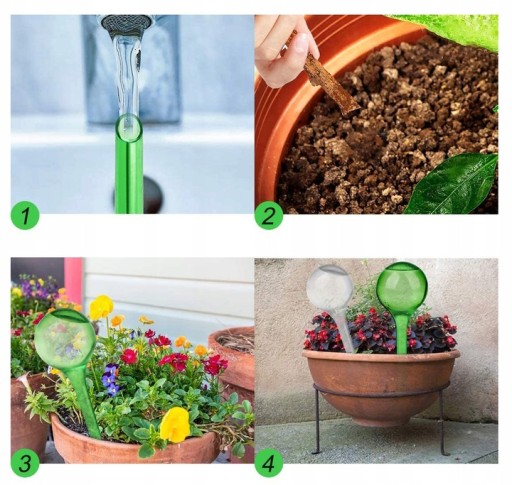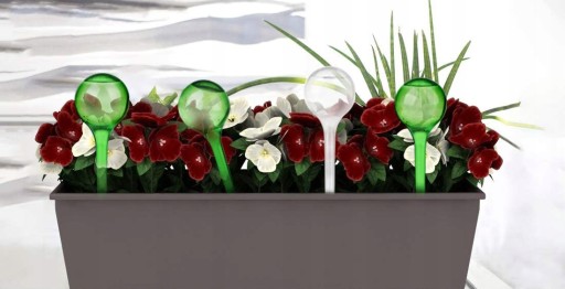 - Dozowniki wody dla roślin eliminują problem roślin bez nadzoru i zaleca się umieszczenie kuli nawadniającej bezpośrednio na dnie doniczki, aby uniknąć szybkiej utraty wody.