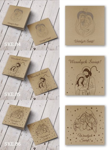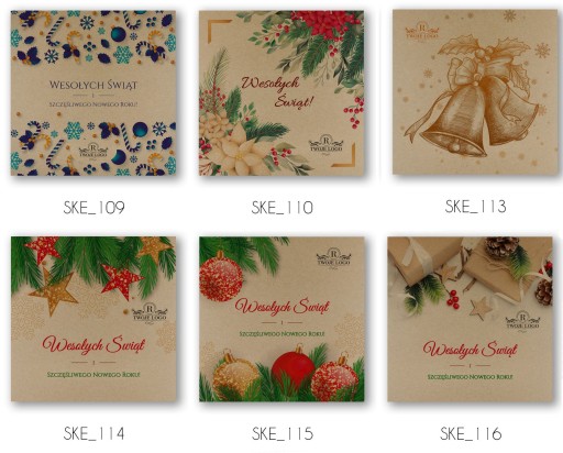 Oferujemy Państwu firmowe kwadratowe kartki świąteczne wykonane na brązowym papierze ekologicznym.