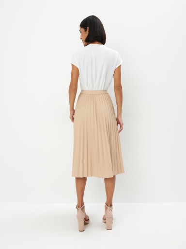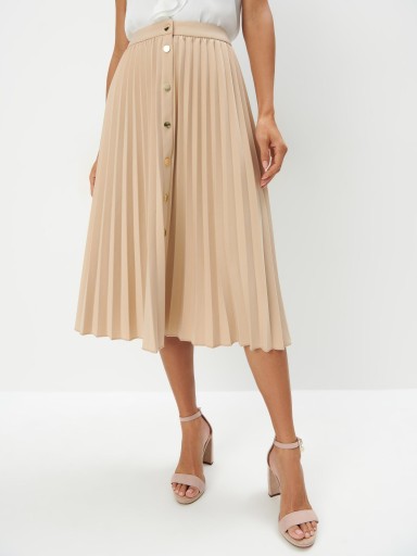 ПРОСТАЯ КЛАССИЧЕСКАЯ БЕЖЕВАЯ ЮБКА МИДИ СО СКЛИСАМИ С СРЕДСТВАМИ 40