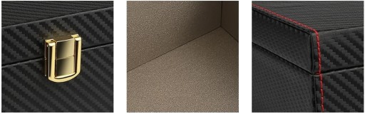 - Elegancki Wygląd: Luksusowe wykończenie z włókna węglowego i czerwonymi szwami sprawia, że jest to stylowy dodatek lub idealny prezent.
