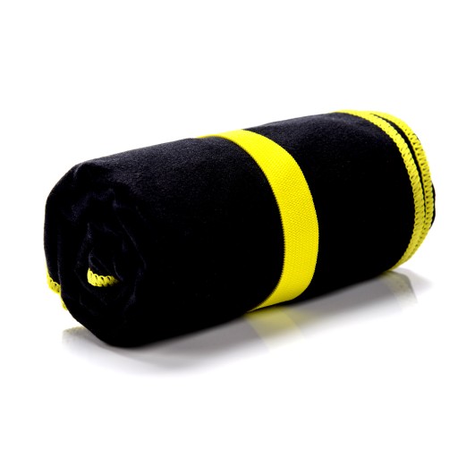 Ręczniki posiadają wszytą gumkę, która pozwala na zwinięcie ich w rulon i bardzo łatwy transport.