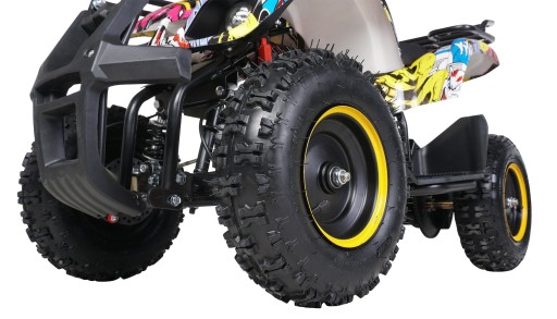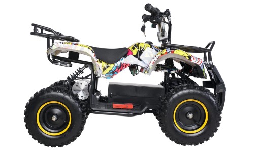 Elektryczny quad dla dzieci Torino zachwyca nie tylko najnowocześniejszą technologią zapewniającą radość z jazdy i bezpieczeństwo. Wizualnie jest to także pojazd niezwykły i imponujący. Projekt jest ściśle oparty na dużych quadach dla dorosłych i przemawia do dzieci, które kochają solidne, sportowe rowery. Atrakcyjny quad dla dzieci jest dostępny w różnych wersjach kolorystycznych. Dostępna jest prosta czarna koszulka polo , a także zielone , niebieskie i czarno - biało - czerwone warianty polo , a także żółta z kolorowymi graffiti . Nadaje się na każdy gust.