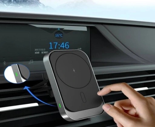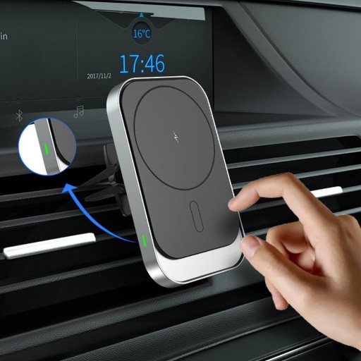 CW19 to perfekcyjnie wykonany uchwyt samochodowy montowany do kratki wentylacyjnej dedykowany do urządzeń Apple z funkcją bezprzewodową MagSafe.