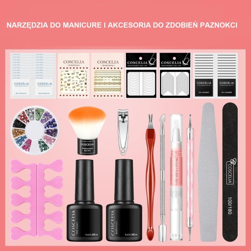 COSCELLIA ZESTAW HYBRYDOWY 10 LAKIERÓW+LAMPA UV LED+ FREZARKA+AKCESORIA