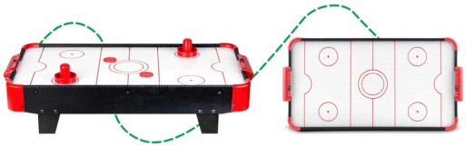 Powierzchnia stołu jest pokryta dużą ilością małych otworów, przez które wydmuchiwane jest powietrze z wentylatora umieszczonego pod spodem stołu. Jest to mechanizm poduszki powietrznej - air flow, dzięki której krążek przesuwa się bez kontaktu z podłożem stołu. Dzięki temu systemowi tempo gry jest dynamiczne i zawrotne. Nad bramkami umieszczone są łatwe w obsłudze liczniki punktów do zliczania goli.