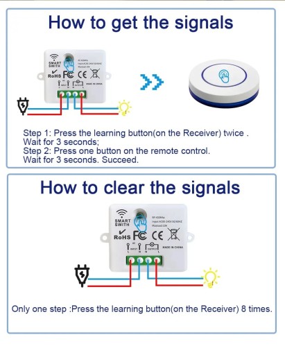 - Obsługiwany typ zdalny: EV1527 Learning code