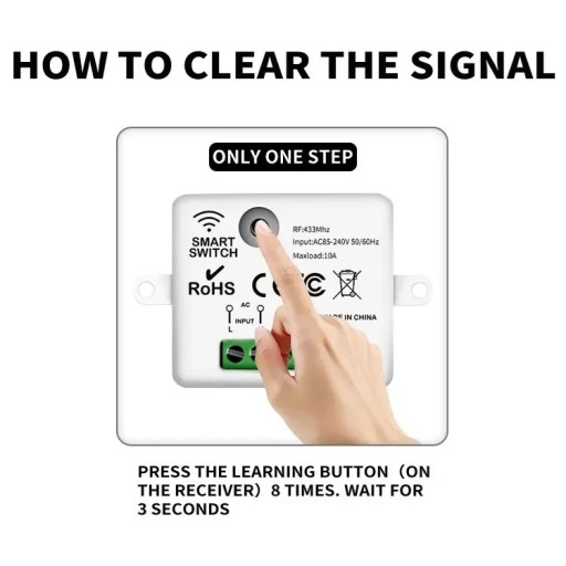- Ośmiokrotnie naciśnij przycisk nauki na odbiorniku