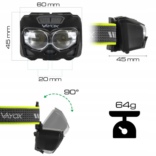 - Akumulator 3,7V, Kabel usb-c, Latarka VA0078, Opaska na głowę, Oryginalne opakowanie