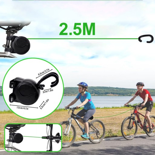 - Ta dziecięca smycz rowerowa umożliwia zachowanie maksymalnej odległości 2,5 metra między dwoma rowerami, zapewniając wygodne i stabilne holowanie.