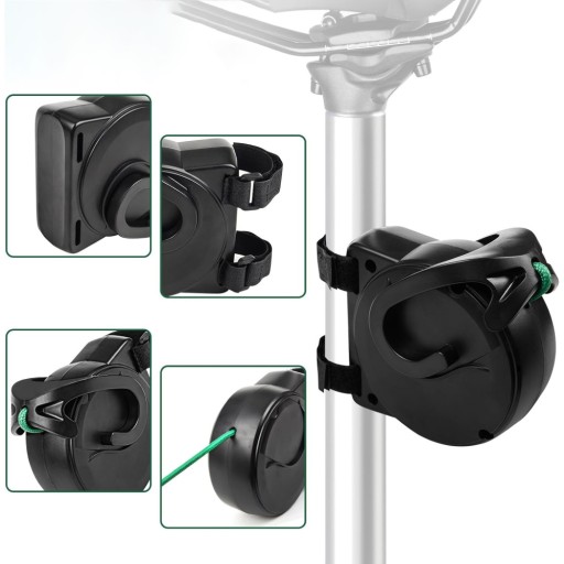 - Główny pojemnik na linę rowerową wykonany jest z materiału PC + ABS, który jest mocniejszy i trwalszy.