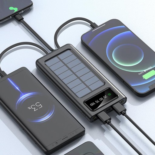 Портативное зарядное устройство Powerbank на солнечных батареях с цифровым дисплеем, 30000 мАч