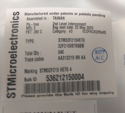 - Typ układu scalonego, mikrokontroler STM32 ARM,