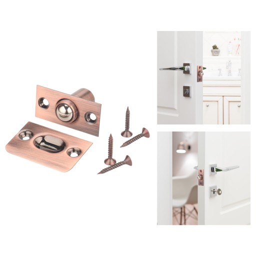 ZATRZASKI: Mosiężny zatrzask kulowy utrzymuje drzwi szczelnie zamknięte, jest prawie niewidoczny. Jest powszechnie stosowany na drzwiach szafy, które nie są używane lub wymagane.