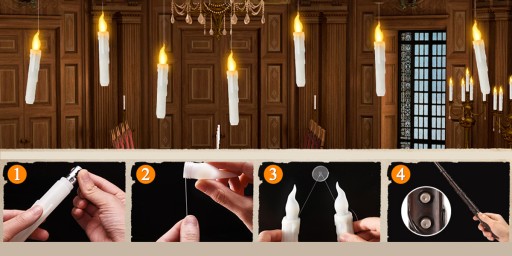 Wystarczy przymocować świecę za pomocą żyłki i bez wysiłku zawiesić ją w wybranym miejscu za pomocą haczyków, aby uzyskać urzekającą iluzję "pływającej" świecy.