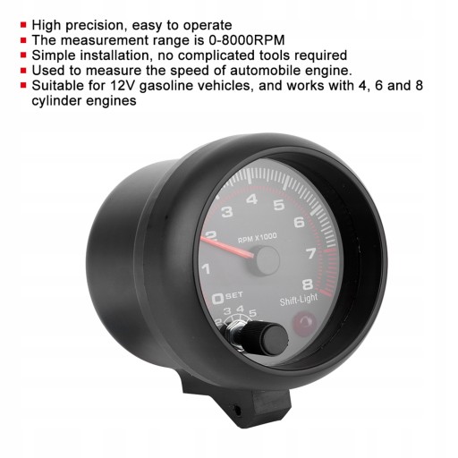 3,75-дюймовый черный автомобильный тахометр 0-8000